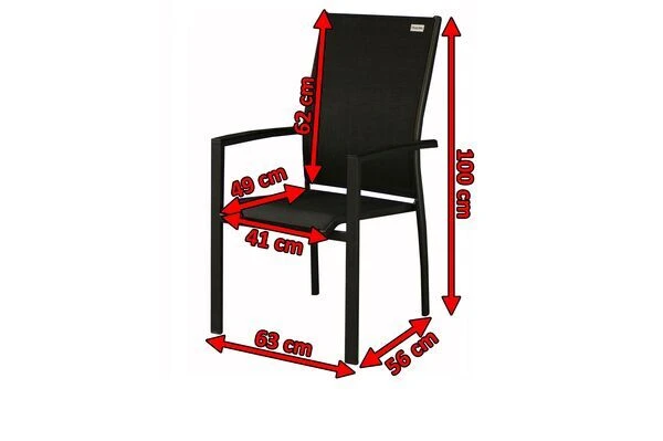 Doppler Stapelsessel Expert aus pulverbeschichtetem Aluminium und Textilene Bezug in schwarz