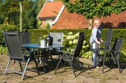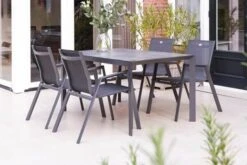 HARTMAN Canterbury Esstischgarnitur, Xerix, Alu/Textilene, Tisch 180/240x100cm, 6 Stapelsessel