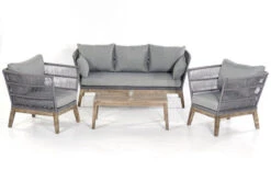 SUNNY SMART Bella Loungemöbel, Sand, Alu/Akazienholz/Polyrope, Inkl. Dekokissen, Inkl. Polster