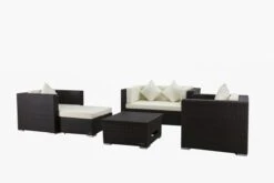 OUTFLEXX Lounge-Set, 5 Personen, Braun, Polyrattan, Inkl. Loungetisch, Wasserfeste Kissenbox