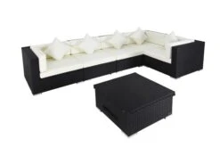 OUTFLEXX Loungemöbel Polyrattan, Weiß, Für 5 Personen, Inkl. Kaffeetisch, Wasserfeste Kissenbox