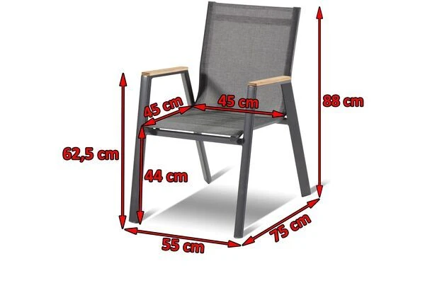 4er Set Stapelsessel „Aruba“ aus Aluminium/Textilen in xerix/anthrazit mit FSC-Teak Armlehnen von Hartman