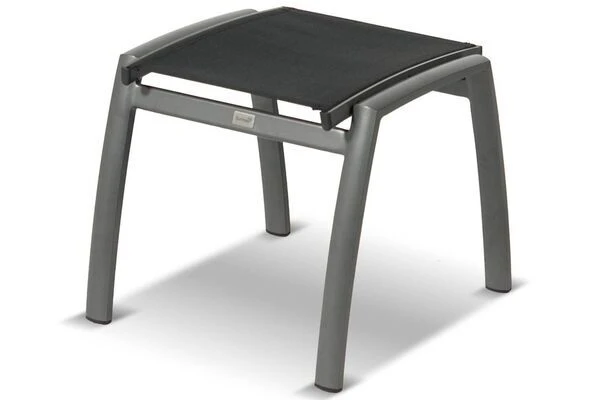 Der Rahmen ist wie bei den Stühlen aus anthrazitfarbenen Aluminium gefertigt und mit strapazierfähigen Textilen ebenfalls in der Farbe Anthrazit kombiniert, was den Hocker gleichermaßen leicht und robust werden lässt – egal ob feuchtes Wetter oder auch einmal ein Stoß, der Hocker verzeiht auch einmal einen ruppigeren Umgang.