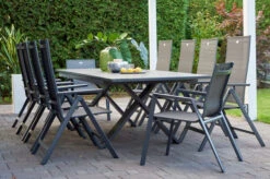 Exklusive Hartman Esstischgarnitur mit Ausziehtisch Xanadu, 2 Stapel- und 8 Multipositionssesseln Aruba