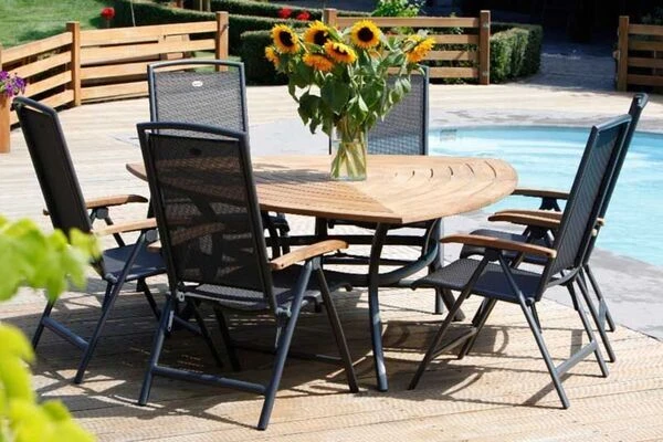 Die verwendeten Materialien sind extrem witterungsbeständig und pflegeleicht, daher kann der Tisch auch bei schlechtem Wetter ohne Probleme auf Ihrer Terrasse stehen bleiben. Das robuste Tropenholz ist äußerst resistent gegen äußere Einflüsse und weist zudem ein attraktives Aussehen auf, was maßgeblich gekennzeichnet ist durch seine warme Farbgebung und attraktive Maserung. Außerdem ist Teakholz aufgrund der erwähnten Eigenschaften besonders pflegeleicht, sodass Sie kaum Zeit mit der Pflege verbringen und sich den angenehmen Dingen widmen können. Die FSC®-Zertifizierung garantiert Ihnen, dass das Holz aus verantwortungsvollen Quellen stammt, sodass Sie sich entspannt zurücklehnen und Ihre neuen Gartenmöbel so richtig genießen können.