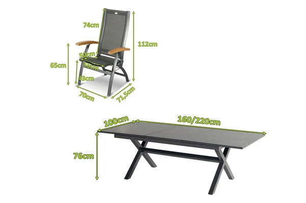 Die Multipositionssessel von Hartman wissen durch die qualitativ hochwertige Verarbeitung und Stabilität zu überzeugen. Dank der vorteilhaften Stoffzusammensetzung der Textilenbespannung in anthrazit aus 70% Polyvinylchlorid und 30% Polyester profitieren Sie von einer langen Haltbarkeit. Optisch stechen die Stühle durch durch das Detail der Teakholzarmlehnen heraus und runden die Optik des Sets in besonderer Weise ab. Sie werden gar nicht mehr aufstehen wollen, denn das witterungsbeständige Material ist durch seine Flexibilität auch ohne Auflagen sehr bequem. Das Gestell aus pulverbeschichtetem Aluminium in xerix sorgt für ein geringes Eigengewicht von nur ca. 10,7 kg, sodass Sie den Stuhl jederzeit verschieben und zwischen Sonne und Schatten wählen können. Trotz des leichten Gewichts ist der Multipositionssessel äußerst stabil und kann mit bis zu ca. 135 kg belastet werden. Um Ihren Terrassenboden beim Verschieben zu schützen, verfügen die Stühle über praktische Bodenschoner. Ob Sie beim Essen ganz aufrecht sitzen möchten oder sich in der Sonne zurücklehnen wollen, Sie finden immer dank der verstellbaren Lehne die richtige Sitzposition. Ebenso schnell und unkompliziert können Sie die Sessel zusammenklappen und platzsparend verstauen