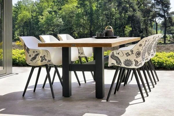 Mit diesem massiven Esstisch aus der „Sophie Yasmani“-Serie wird Ihre Outdoor-Oase zur modernen Design-Ecke.