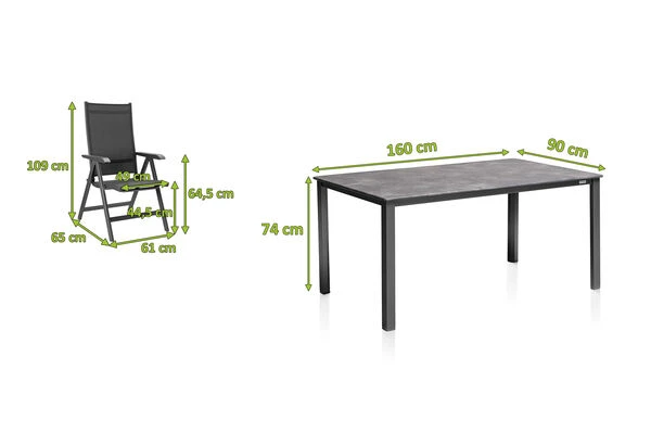 KETTLER Cubic/BasicPlus Esstischgarnitur, anthrazit, Alu/Kettalit/Textilene, 160×90 cm, 4 Multipos