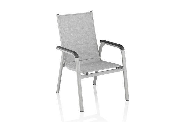 Mit den passenden Stapelsesseln aus der Basic Plus Padded Serie kommen Sie so bequem durch den Sommer. Das solide und formschöne Gestell besteht aus edlem, silberfarbenen Aluminium. Das witterungsbeständige Material ist durch seine Flexibilität und seine zusätzliche Polsterung (padded) auch ohne Auflagen sehr bequem. Das formstabile, hellgraue Gewebe nimmt kein Wasser auf, ist atmungsaktiv, UV-Beständig und trocknet nach einem kurzen Schauer sehr schnell – insgesamt also der perfekte Begleiter in Ihrem Garten. Die Sessel lassen sich aufstapeln – wenn sie nicht benötigt werden können Sie sie platzsparend verstauen.
