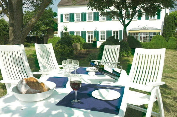 Mit dem Multipositionssessel Roma bequem durch den Sommer. Mittels Rasterschiene lässt sich der Sessel leicht in 4 verschiedene Positionen bringen – so wird der Komfort eines Liegestuhls direkt integriert. Das solide und formschöne Gestell besteht aus edlem, weißem Vollpolymer. Die Sitzfläche und Rückenlehne sind ebenfalls aus weißem Vollkunststoff gefertigt. Das leichte Material ist formstabil und trotzdem sehr bequem und zusätzlich UV- und sonnenölbeständig – insgesamt also der perfekte Begleiter in Ihrem Garten. Dank der leichten Materialien und des Klappmechanismus lässt sich der Stuhl leicht handhaben – wenn er nicht benötigt wird können Sie ihn platzsparend verstauen.