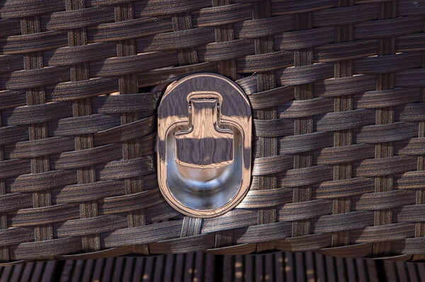 | Stabiles Polyrattan-Geflecht Das flache Polyrattan-Geflecht in der Farbe braun ist besonders stabil, wasserabweisend und wetterfest. | |