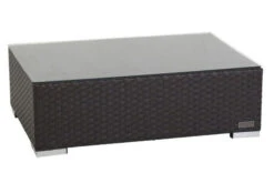 Ob als Bestandteil einer Gartenlounge oder als Balkonmöbel: Dieses Modulelement bietet Ihnen die beste Grundlage für Ihre individuelle Gartengestaltung. Der Kaffeetisch ist absolut wetterfest und äußerst pflegeleicht. Extreme Temperaturen zwischen -60°C und +70°C können der flachen Polyrattanfaser nichts anhaben. Der Gartentisch hat edle Aluminiumfüße, die dank der Kunststoffnoppen Ihren Bodenbelag schonen und einen schönen Kontrast zur Polyrattanfaser bilden. Die klare, aufliegende Sicherheitsglasplatte bietet sicheren Stand und lässt sich einfach reinigen. Einzelne Modulelemente bieten Ihnen den praktischen Vorteil, Ihre Gartenlounge bei Bedarf zu erweitern und immer wieder neu anzuordnen.
