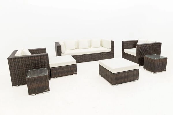 Viele Sitzplätze, ein schickes und modernes Design sowie die Langlebigkeit machen diese Loungegruppe zur optimalen Garten- oder Terrassenausstattung.