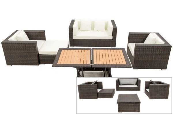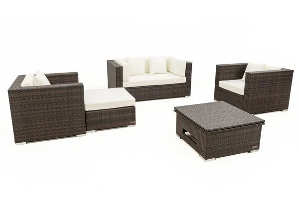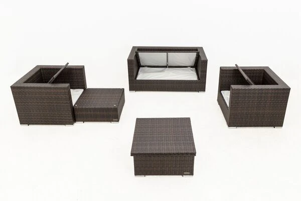 Loungemöbel-Set aus Polyrattan mit Kissenboxfunktion in braun-marmoriert für bis zu 5 Personen