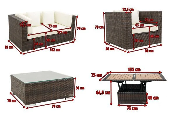 - Sitz- & Rückenkissenstärke: ca. 10 cm