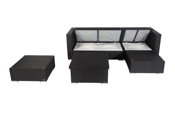 Loungemöbel-Set aus Polyrattan mit Kissenboxfunktion in schwarz für bis zu 5 Personen