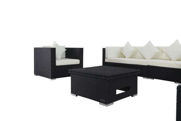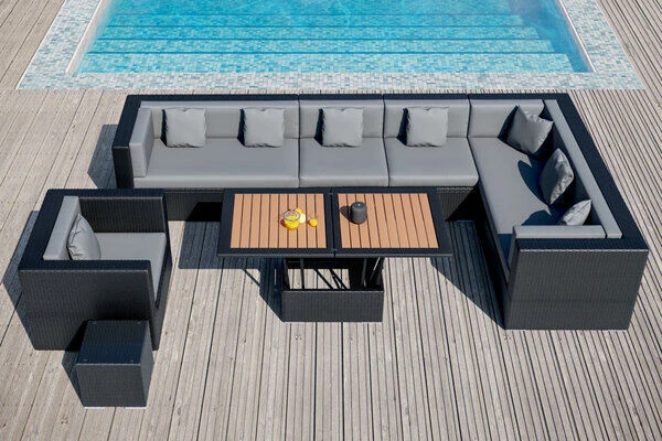 Für Ihr Outdoor Wohnzimmer: die OUTFLEXX® XXL Gartenlounge mit Kissenboxfunktion inkl. höhenverstellbaren Loungetisch in schwarz