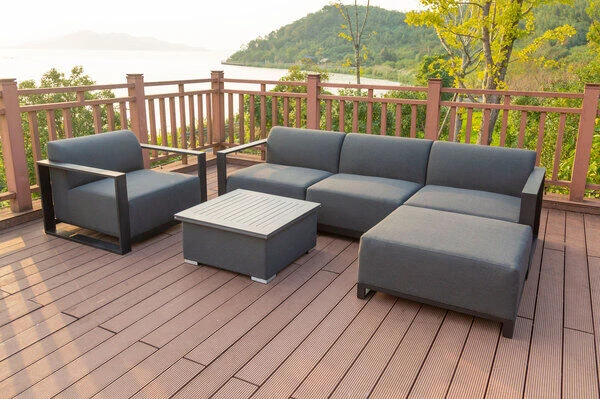6-teilige Ecklounge-Gruppe von OUTFLEXX® aus Aluminium/Sunbrella in der Farbe anthrazit/sooty, für 5 Personen