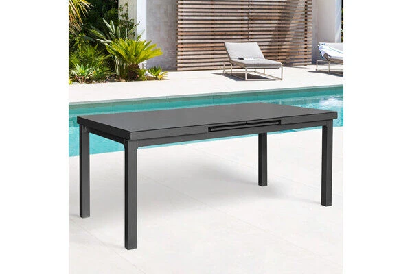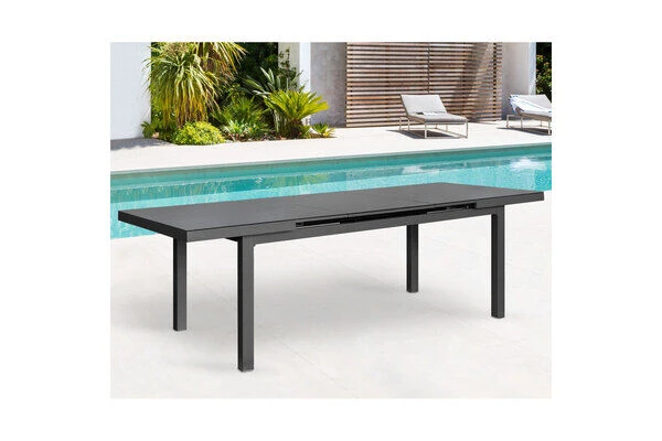 OUTFLEXX® Premium Ausziehtisch aus Aluminium/Sicherheitsglas in anthrazit/grau
