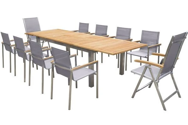 Esstischgarnitur von OUTFLEXX® für 10 Personen aus Teak/Edelstahl