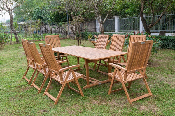 OUTFLEXX® Esstischgarnitur aus FSC®-zertifiziertem Akazienholz für acht Personen