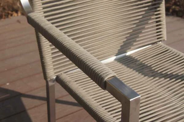 Stapelsessel von OUTFLEXX® aus Edelstahl/Rope in silber/grau