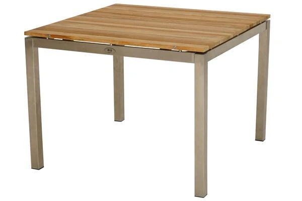 Die Kombination aus Edelstahl und Teakholz sorgt bei diesem ca. 100 x 100 x 75 cm großen Gartentisch aus der Serie „Brooklyn“ von Ploss für ein besonders modernes und zeitloses Design. Die aus SVLK-zertifiziertem Teak gefertigte Tischplatte ist schlicht und mit den breiten Bohlen edel zugleich. Die gebürstete Oberfläche lässt das Holz besonders rustikal und natürlich wirken.