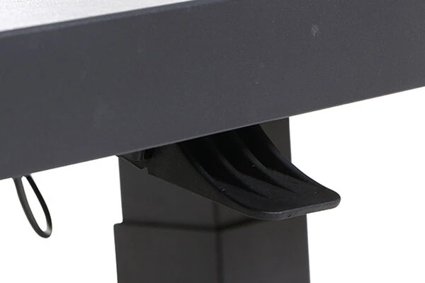 | Stufenlos höhenverstellbarer Tisch Manuell lässt sich die Höhe vom Tisch ganz leicht per Hebel (Hydrauliksystem) einstellen. |