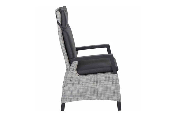 Holen Sie sich eine Extraportion Komfort in Ihren Garten. Die moderne Serie Carlos/Corido besticht durch höchsten Sitzgenuss. Die einzigartigen Wellness-Möbel vereinen gekonnt Qualität mit trendigem funktionalen Design. Die Rückenlehne des bequemen Sessels lässt sich mehrfach verstellen, somit wird jedes Essen zu einem gemütlichen Miteinander.