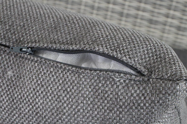 | Pflegeleicht und wetterfest Dank der hochwertigen Materialien können Sie die Möbel das ganze Jahr über ohne Probleme nutzen. Die Kissen verfügen über einen praktischen Reißverschluss und sind zudem handwaschbar. Mit einer regelmäßigen, jedoch nicht sonderlich zeitintensiven Pflege, haben Sie ganz besonders lange Freude daran. |