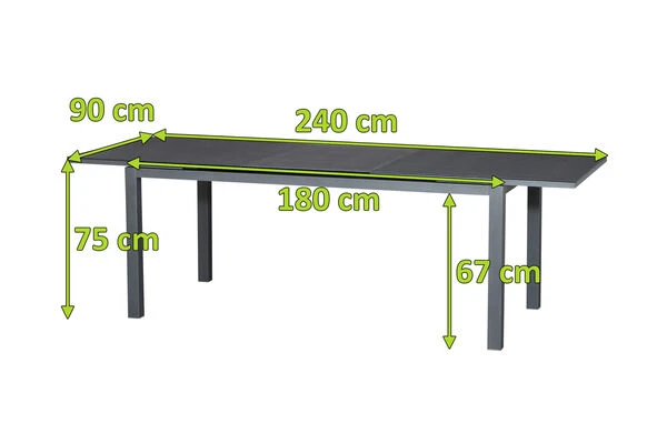 Den Ausziehtisch Miros von Siena Garden können Sie jederzeit Ihren Bedürfnissen anpassen: Mit den Maßen ca. 180 x 90 x 76 cm haben Sie sowohl einen gemütlichen Tisch für eine kleinere Runde und sobald Sie diesen auf ca. 240 cm ausziehen, auch ausreichend Platz bei größeren Events. Beim Aluminiumgestell setzen Sie auf stilvolles graphit, wobei sich die Tischplatte in Anthrazit harmonisch einfügt. Der Tisch wiegt ca. 48 kg.