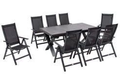 SIENA GARDEN Sincro/Solea Dining Set, anthrazit/grau/blau, Alu/Gardino®-Geflecht/Keramik, ca. 200-260x103cm, inkl. 4 Diningsessel, stufenlos verstellbar