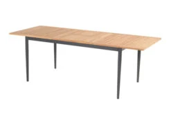 Wer das Besondere liebt und gerne auf jede Gelegenheit vorbereitet sein möchte, ist mit einem Ausziehbaren Esstisch bestens bedient. Der Tisch ist ca. 103 cm breit und ca. 77 cm hoch, im normalen Zustand hat er eine Länge von ca. 205 cm – so steht dem gemütlichen Mittagessen mit der Familie nichts mehr im Wege. Das Gestell wurde aus pulverbeschichtetem Aluminium in Anthrazit hergestellt, was den Tisch besonders haltbar macht. Die Tischplatte besteht aus hochwertigem Keramik in naturgrauer Holzoptik. Die Platte zum Erweitern des Tisches ist ebenfalls aus ca. Keramik gefertigt und lässt sich ganz einfach ausziehen. Man zieht einfach die beiden oberen Platten auseinander und zieht die darunterliegende Platte nach oben, und schon ist der Tisch auf ca. 265 cm erweitert – perfekt für spontane, große Runden. Die Unterschubhöhe beträgt ca. 68 cm – so kann man gemütlich mit vielen Arten von Sesseln an diesem Tisch Platz nehmen. Der Tisch hat ein Gewicht von ca. 93,5 kg, und ist somit perfekt gegen Windstöße geschützt. Die Fußkappen bestehen aus schwarzem Kunststoff und schützen den Boden vor unschönen Kratzern beim Verrücken des Möbelstücks.