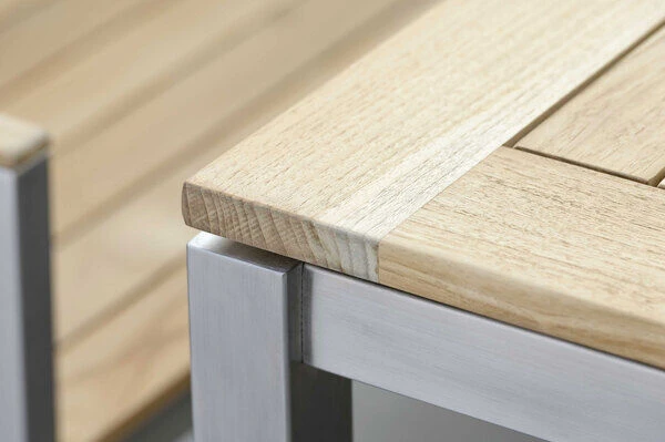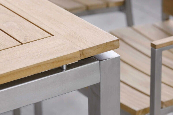 Teakholz und Edelstahl sind besonders witterungsbeständig und halten sowohl Frost und Hitze als auch Feuchtigkeit und Regen aus. Teakholz hat aufgrund des hohen Anteils an holzeigenen Ölen einen natürlichen Schutz gegen Pilze und Schädlinge. So beschränkt sich die Pflege Ihres neuen Gartentisches auf ein Minimum und Sie können Ihre Zeit im Garten mit angenehmen Tätigkeiten verbringen.