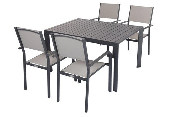 5-teilige Esstischgarnitur von VILLANA aus Aluminium/Textilene in anthrazit/grau mit Platz für 4 Personen